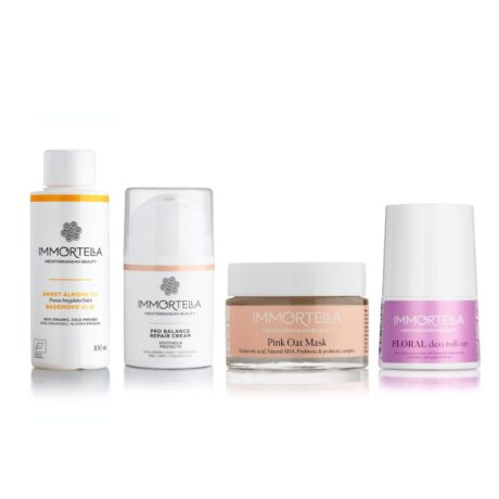 MOMMY CARE set sadrži potpuno sigurne proizvode za njegu kože. Kombinacija Bademovog ulja, Probiotičke kreme, luksuzne Maske za lice od roze gline i Deo roll-on Floral sačuvati će vašu kožu od strija i vratiti joj elastičnost i blistavost uz prirodnu njegu.
